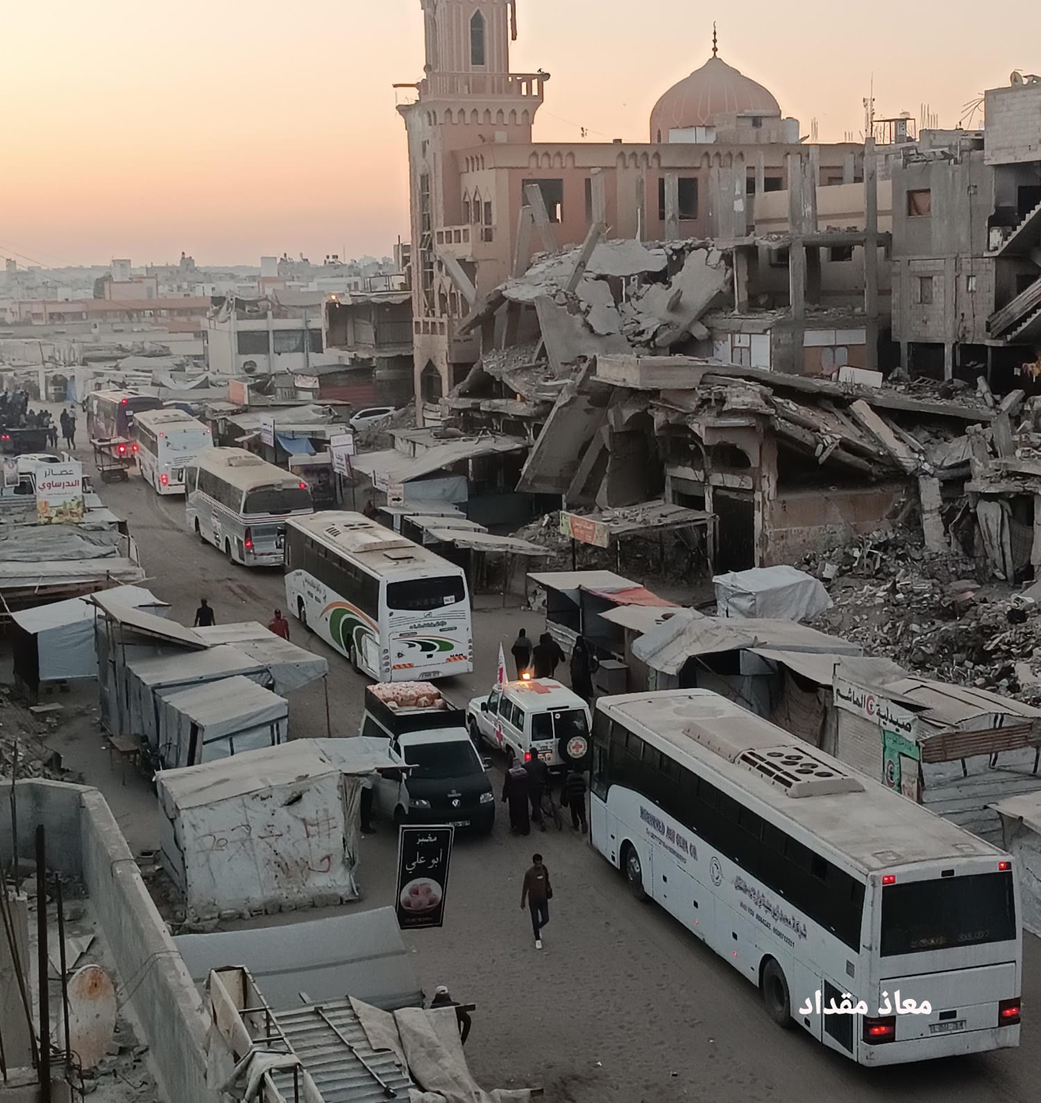Part of the ceasefire deal, Red Cross vehicles waiting,