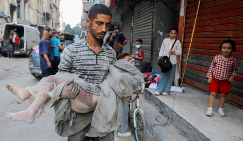 forces near the bombed site of the bus station in Gaza