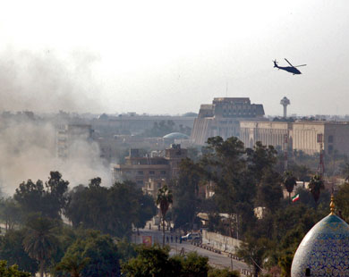 Above: Smoke rising from the Riyadh US base in Kirkuk after an