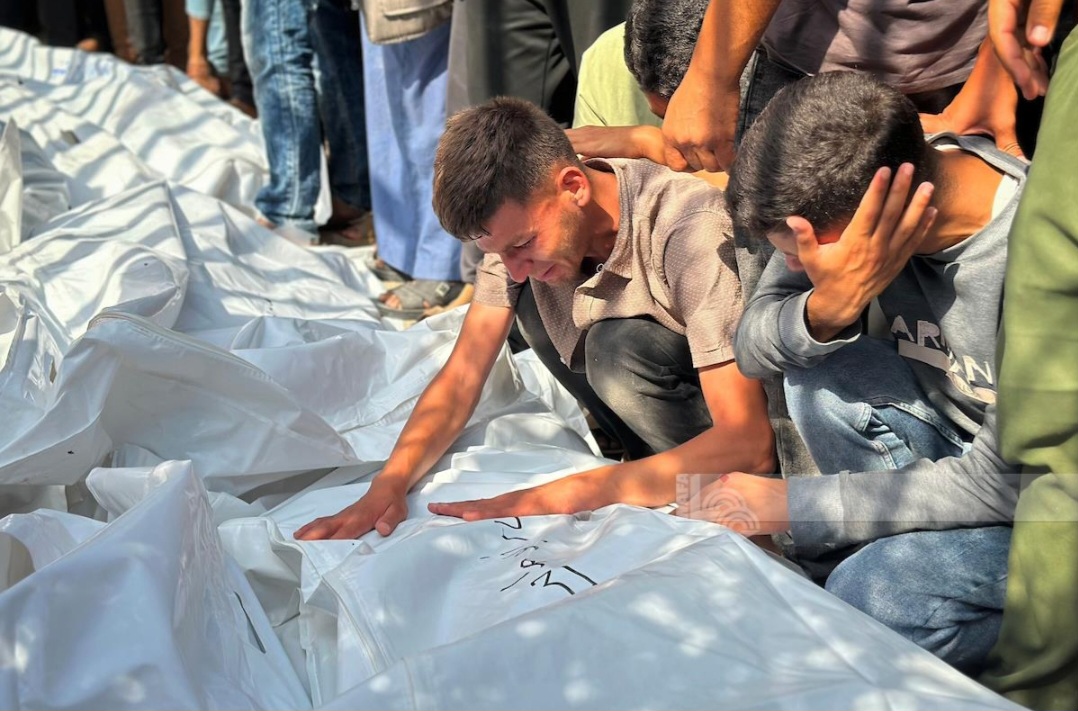 victims of an Israeli genocidal air strike on El-Nusayrat, in