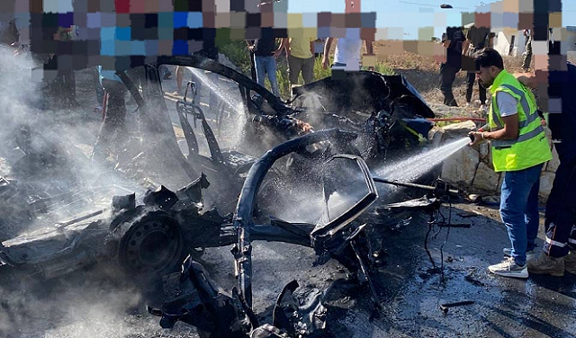 fire to a Palestinian car at dawn, on October 14, 2025.