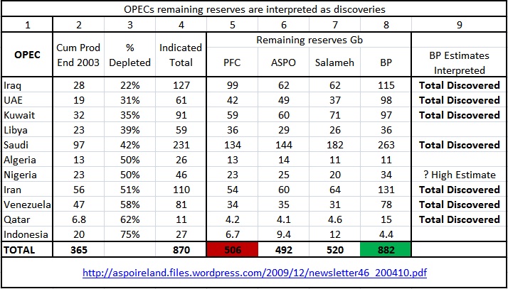 “….The immediate conclusions are that OPEC with the exception of Indonesia, Algeria, Libya and just possibly Nigeria are supplying BP with their total discovered rather than their remaining reserves.